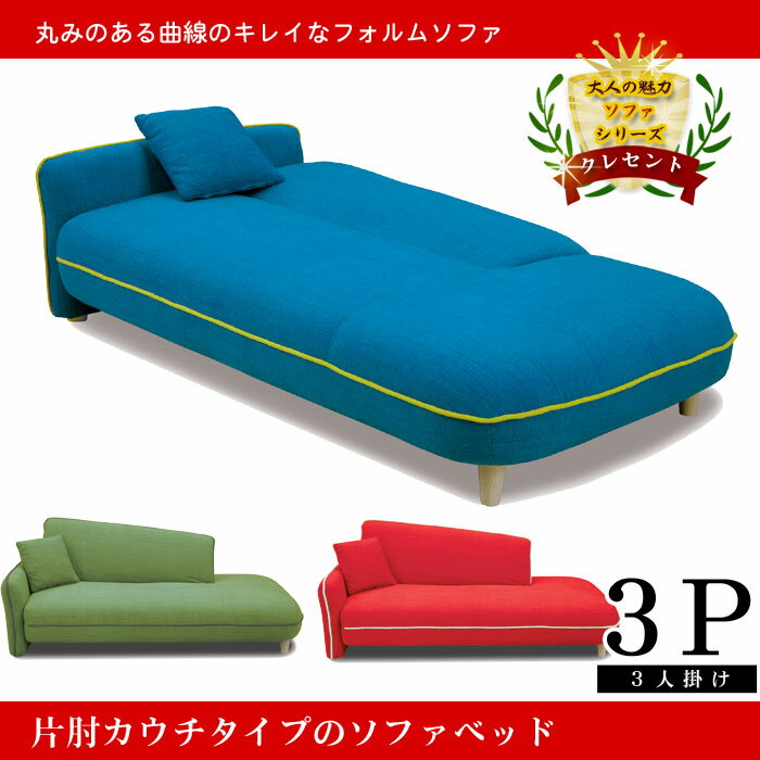 ソファベッド 片肘カウチ 3人掛け ファブリック ブルー、レッド、グリーン カジュアル 高級感 丸みのあるシンプルなデザイン【地域限定大型宅配便送料無料】【OK】 PR2 3P ソファ sofa 三人掛け ベッド ベット BED ソファー
