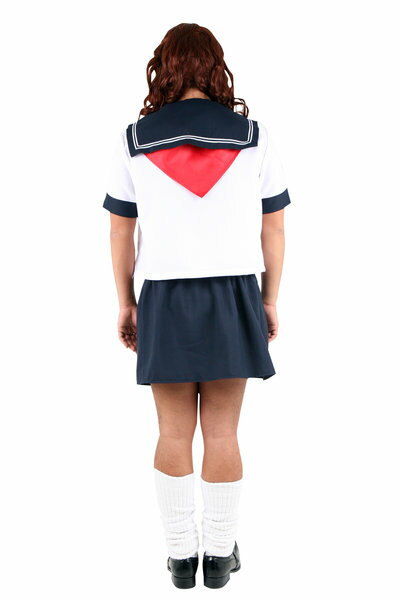 男が着るから面白くて盛り上がる!最高に笑える男のセーラー服!【セット内容】セーラーブラウス、スカート、スカーフ 【素材】白い部分:ポリエステル65% 綿35% 青い部分:ポリエステル100%【着丈】ブラウス55cm スカート35cm 肩幅:49cm バスト:120cm ウエスト:70〜120cm 袖丈:25cm【モデル身長】175cm 【仕様】左開きファスナー